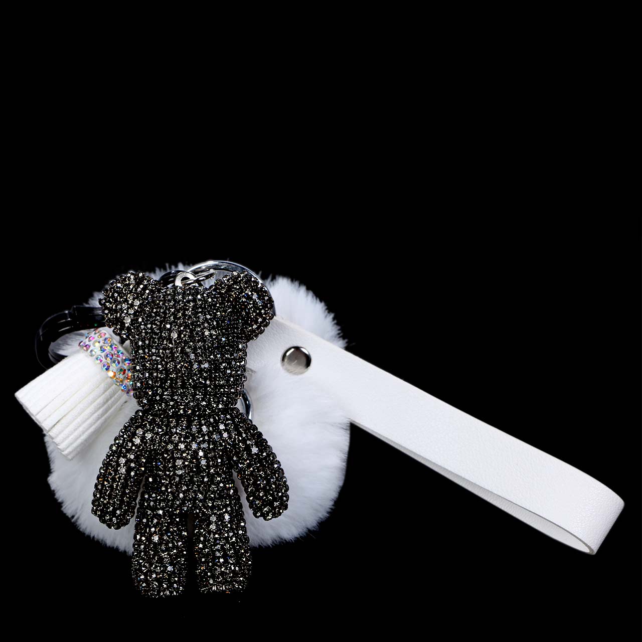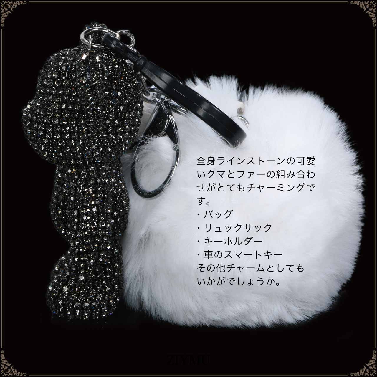 [ZIYMU] ファー バッグチャーム ベア クマ ポンポン チャーム キーホルダー キーリング 携帯ストラップ アクセサリー オールブラック zm-c-002bk