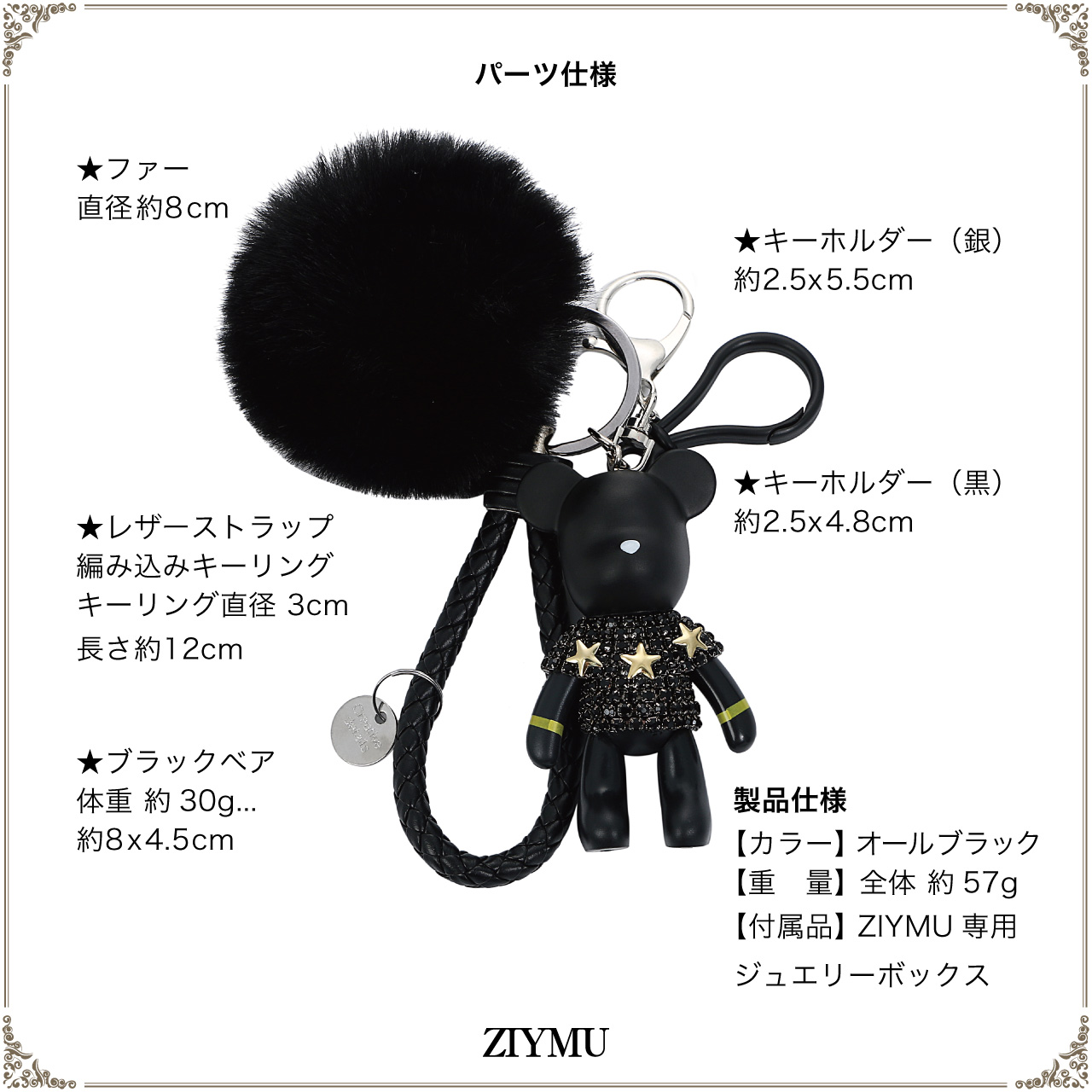 [ZIYMU] ファー バッグチャーム ベア クマ ポンポン チャーム キーホルダー かわいい ストラップ オールシーズン アクセサリー ブラック zm-c-004bk