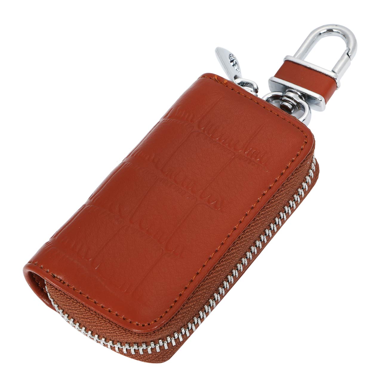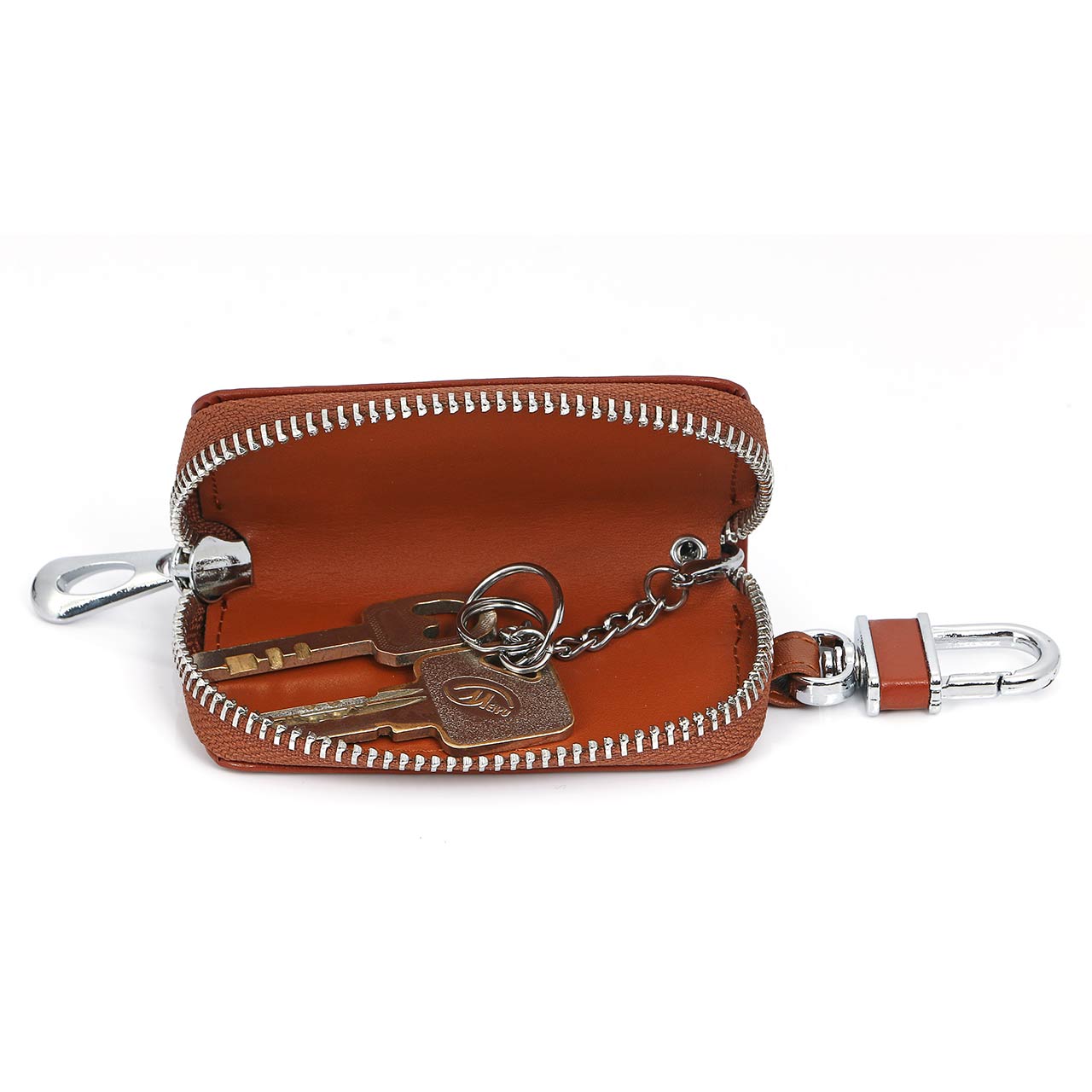 ZIYMU キーケース スマートキー ケース キーリング 本革 レザー メンズ ラウンドファスナー カラビナ付き ダークブラウン zm-kk-001db