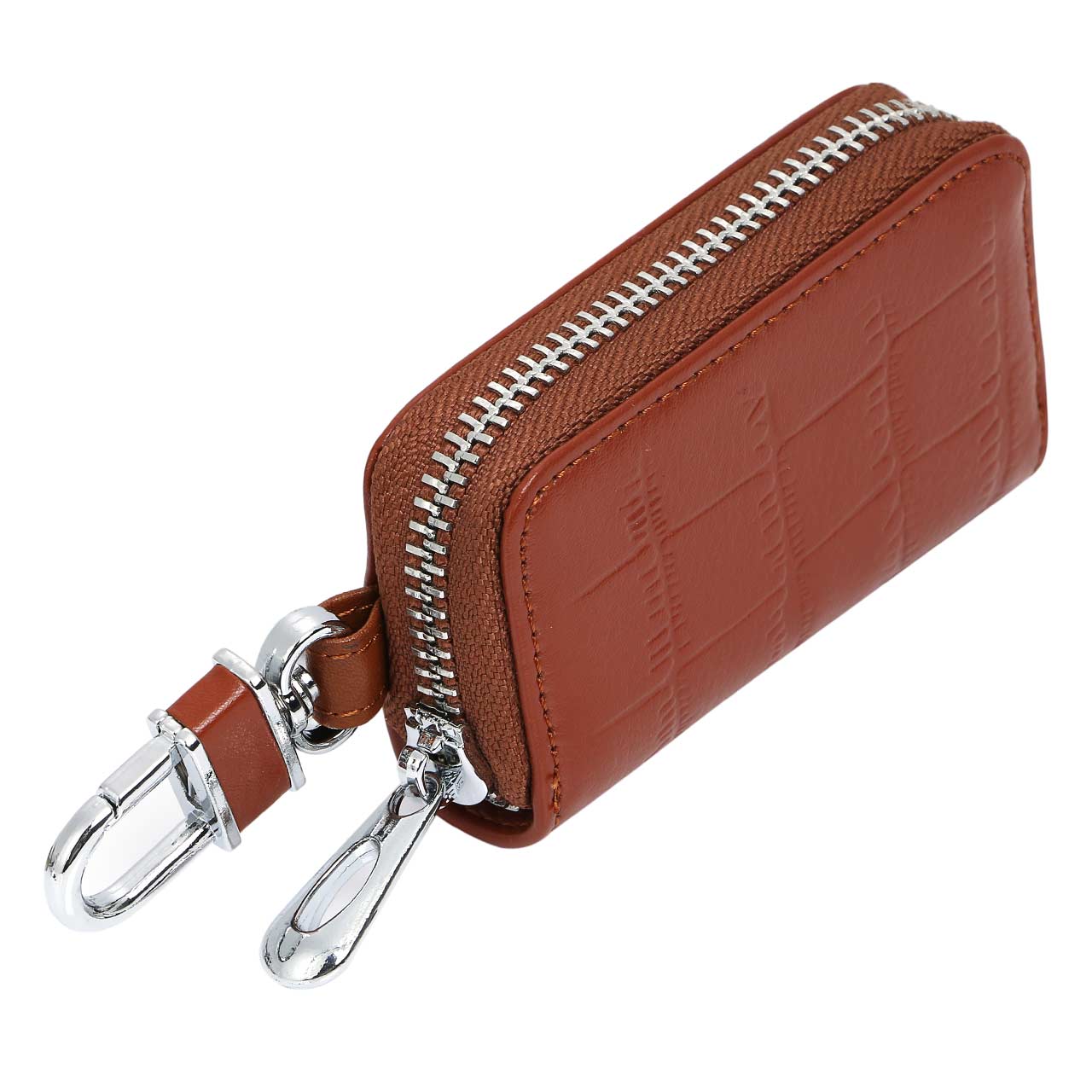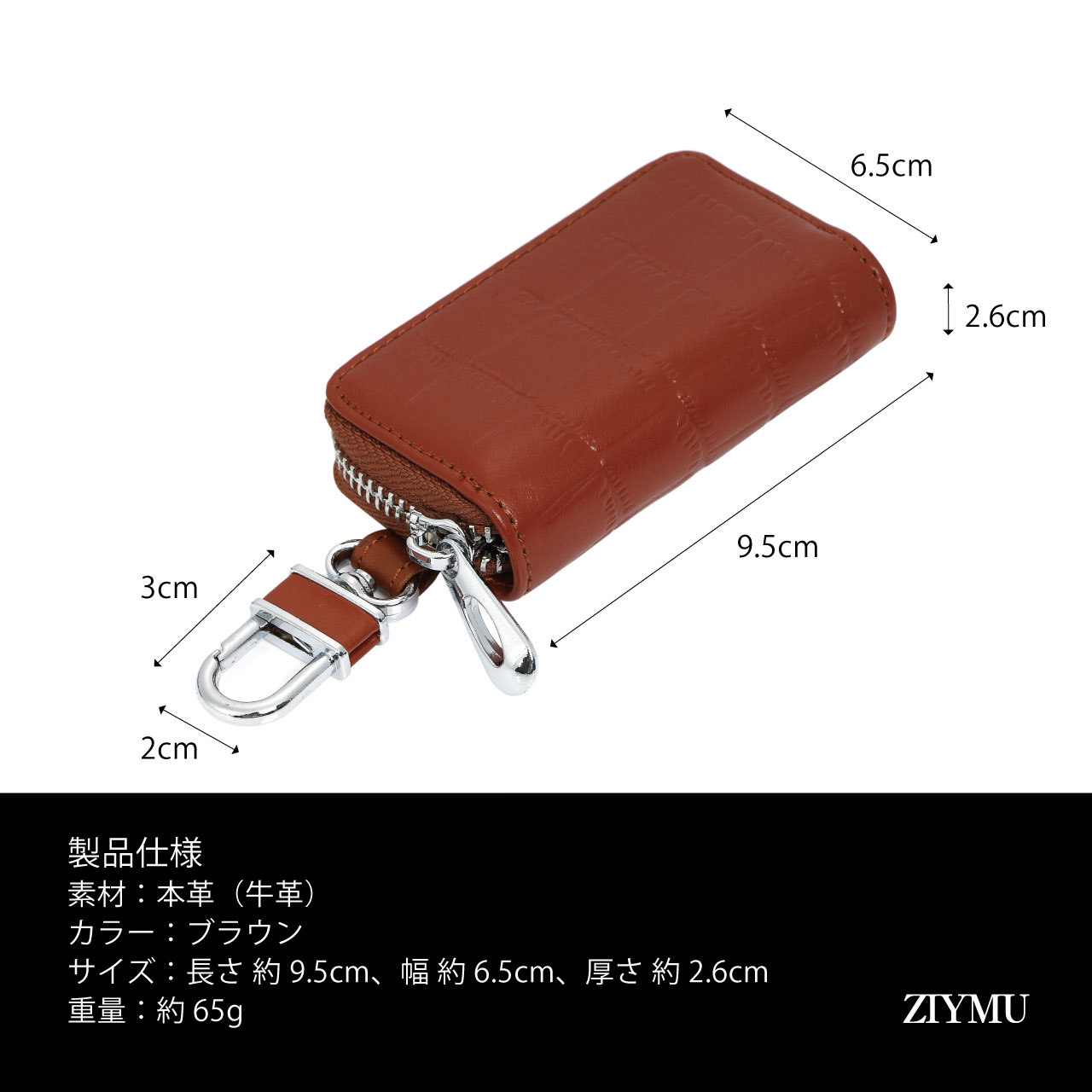 ZIYMU ジーム キーケース スマートキー ケース キーリング 本革 レザー メンズ ラウンドファスナー カラビナ付き ブラウン zm-kk-001br