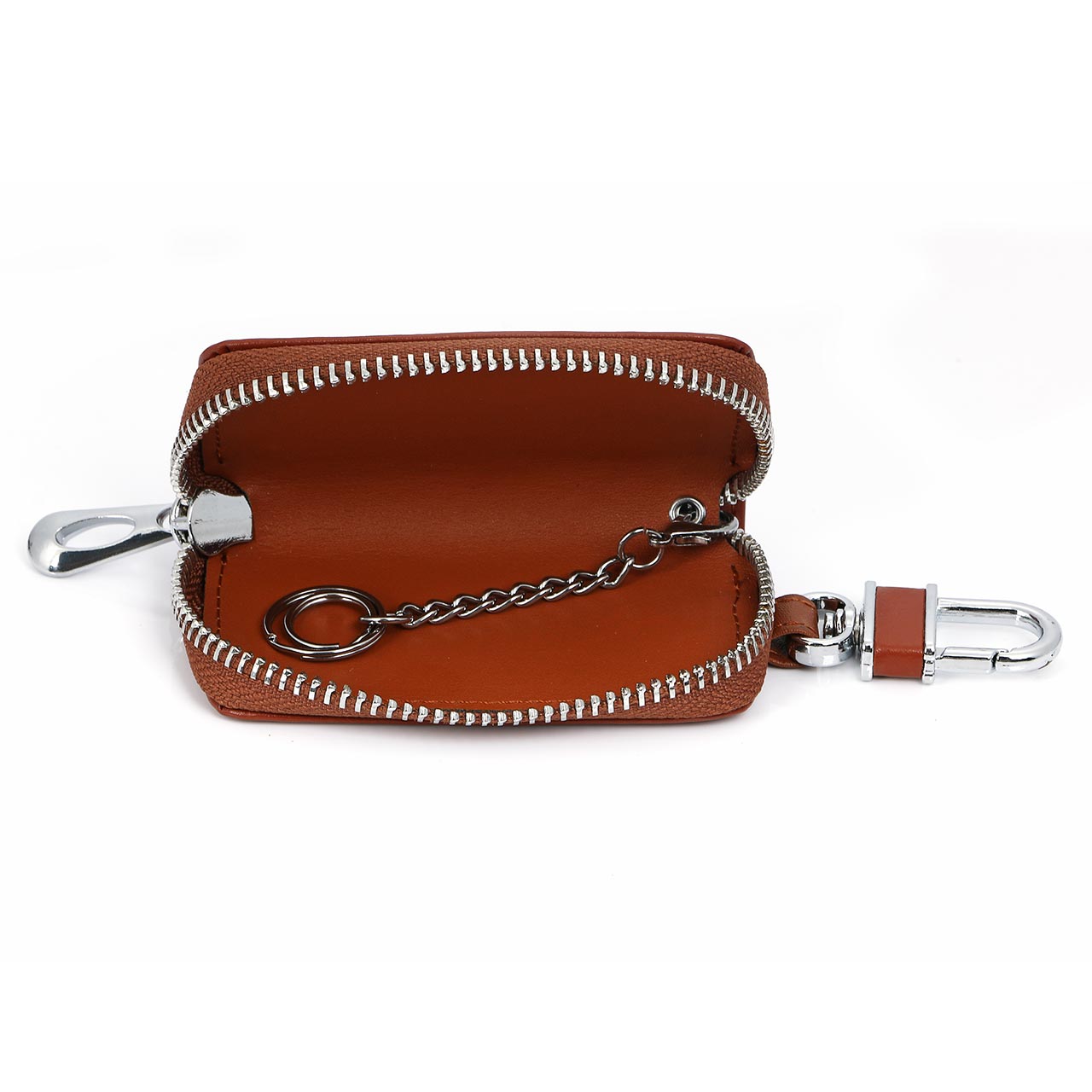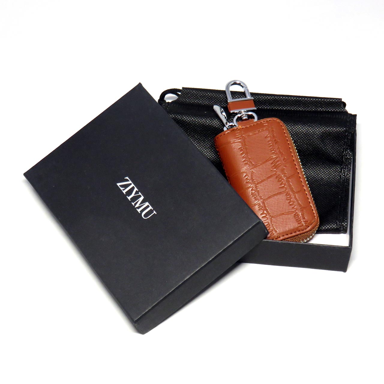 / ZIYMU ジーム キーケース スマートキー ケース キーリング 本革 レザー メンズ ラウンドファスナー カラビナ付き ブラウン zm-kk-001br